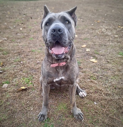 Mocha is a big, beautiful Cane Corso with a heart just as oversized. She's all wiggles and smiles when she's with her trusted people-playful, sweet, and absolutely full of love. However, she can be a bit nervous, especially around new situations or unfamiliar faces. Whether it's a game of tug, fetch, or chase, Mocha is always up for fun. And when the play's done? She's all about the snuggles and quiet time right by your side.