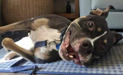 He handles new things well, even when he's unsure, and his tail rarely stops wagging. Snickers does great with redirection, trades toys nicely, has polite food manners, and shows friendly, playful interest in other dogs. He's never mean - just a busy, bouncy boy who doesn't always realize how big he is!